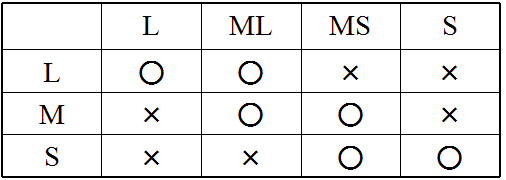 上表中橫列指活塞,豎列指汽缸;○:可匹配,×:不可匹配