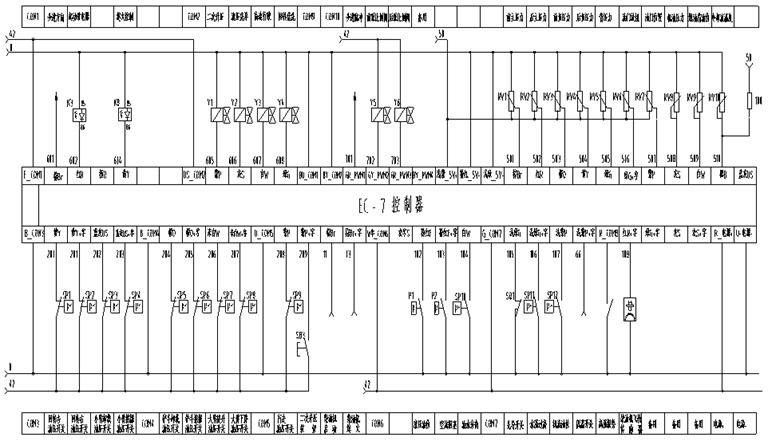 電控系統(tǒng):一臺(tái)EPS控制器或者一臺(tái)EC-7控制器,5個(gè)壓力傳感器、9個(gè)壓力開(kāi)關(guān)、2個(gè)比例閥、4個(gè)電磁閥、1個(gè)步進(jìn)電機(jī)驅(qū)動(dòng)器、1個(gè)油門旋鈕傳感器、1個(gè)油門位置傳感器、1個(gè)水溫傳感器、1個(gè)柴油油位傳感器、1個(gè)機(jī)油壓力傳感器、1個(gè)發(fā)動(dòng)機(jī)轉(zhuǎn)速傳感器(脈沖量)。其中EC-7控制器包含一塊EC-7綜合轉(zhuǎn)換板,實(shí)現(xiàn)通信規(guī)約轉(zhuǎn)換、發(fā)動(dòng)機(jī)頻率匹配等功能。