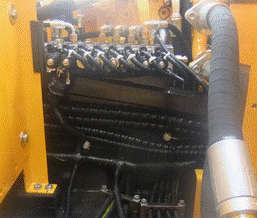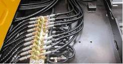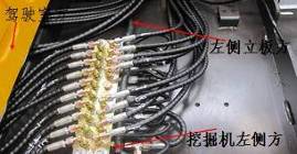 9個先導(dǎo)壓力傳感器位置由主閥上面移到駕駛室后面,如圖所示。由于先導(dǎo)管路順序發(fā)生了變化,所以電氣系統(tǒng)9個壓力傳感器線束走向和連接順序也進行變化,先導(dǎo)線束從左側(cè)立板處分出,直接拉到先導(dǎo)閥塊處。但是同樣保證每個動作壓力傳感器信號號碼和C8M一樣,