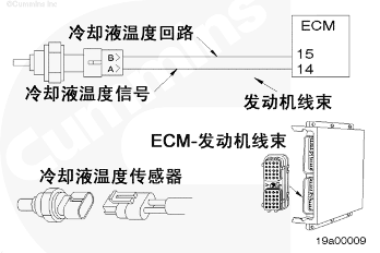 電子控制模塊 (ECM) 利用 CTS 監(jiān)測發(fā)動機(jī)冷卻液溫度。ECM 監(jiān)測信號觸針上的電壓并將它轉(zhuǎn)換成溫度值。ECM 將冷卻液溫度用于發(fā)動機(jī)保護(hù)系統(tǒng)和供油控制。