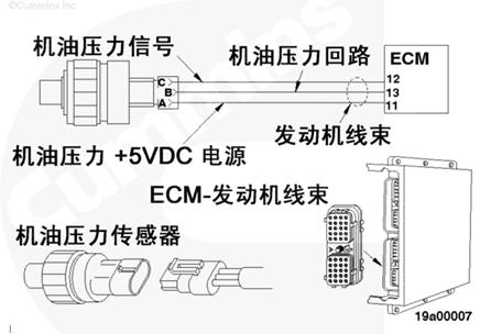 電子控制模塊 (ECM) 利用 OPS 監(jiān)測機油壓力。ECM 監(jiān)測信號觸針上的電壓并將它轉(zhuǎn)換成壓力值。ECM 將機油壓力值用于發(fā)動機保護系統(tǒng)。