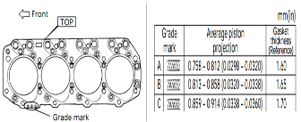 1.選擇適當(dāng)厚度的缸蓋墊,活塞頭部突出量最大與最小之差不能超過(guò)如下所示,并根據(jù)下表確定缸墊厚度