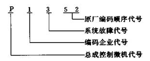 編碼企業(yè)代號(hào)規(guī)定由一位阿拉伯?dāng)?shù)字表示。其中:0——代表SAE定義的故障代碼;其它1、2、3、…9為各汽車(chē)制造公司自行定義的故障代碼。