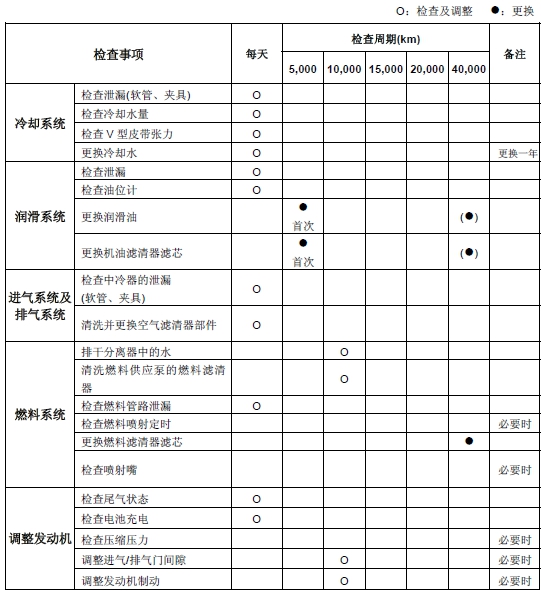 * (●) 機(jī)油更換間隔決定于發(fā)動(dòng)機(jī)的使用和機(jī)油等級(jí)。
