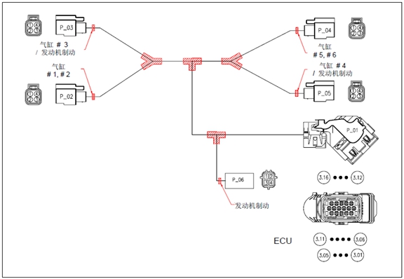 4) 噴油器和發(fā)動(dòng)機(jī)制動(dòng)線束
