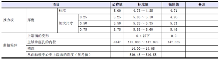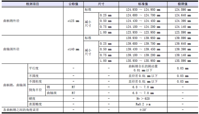 使用加大尺寸推力片時(shí),按照和使用加大尺寸推力片對應(yīng)的標(biāo)準(zhǔn)值研磨曲軸。