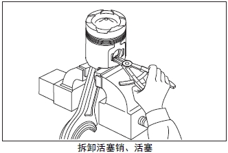 測量活塞銷的外徑。超過極限值時(shí)更換新的活塞銷。