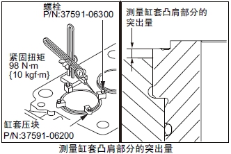 曲軸箱凹槽部分單側(cè)接觸時(shí),進(jìn)行研磨修正。用曲軸箱研磨機(jī)進(jìn)行研磨修正,使圓周4個(gè)方向的槽深誤差小于0.05mm。曲軸箱凹槽研磨修整后,測量缸套凸肩部分的突出量。