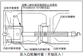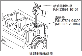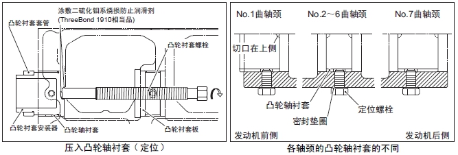 注: 主軸承端蓋的緊固要領(lǐng),參照「發(fā)動機(jī)本體的組裝」的「安裝主軸承端蓋」項(xiàng)。