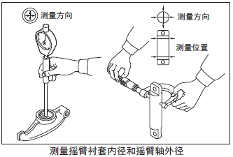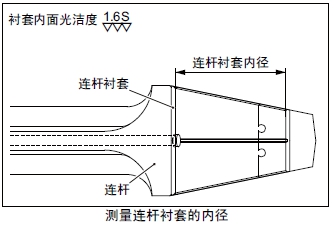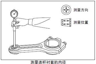 測量連桿襯套的內(nèi)徑。超過極限值時(shí)更換新的連桿襯套。