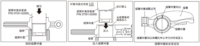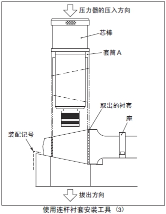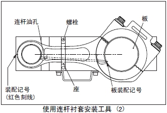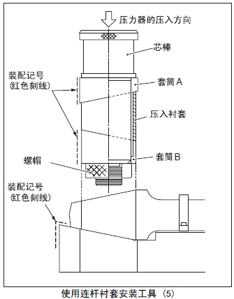 (2) 套筒A裝入心軸,套筒A的裝配記號(紅色刻線)對準(zhǔn)座臺的裝配記號(紅色刻線)后安裝在連桿襯套內(nèi)。