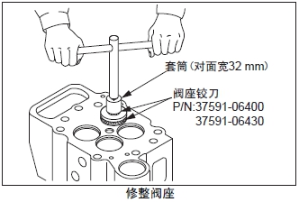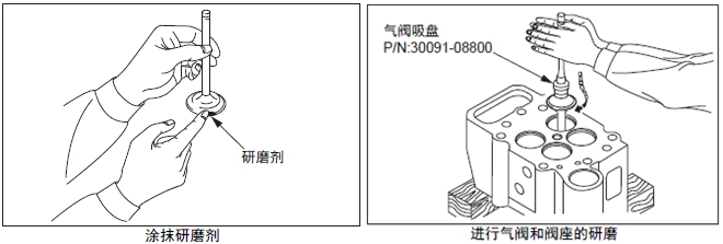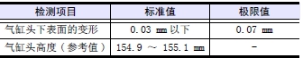 在曲軸箱的上表面放置直尺,用厚薄規(guī)測量變形量。超過極限值時(shí),更換新品或研磨修整。進(jìn)行研磨修整時(shí),要記錄最大研磨量。另外,氣缸頭下面進(jìn)行研磨修整時(shí),合計(jì)的最大研磨量限定在0.50 mm以內(nèi)。