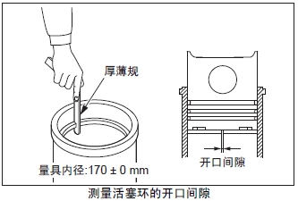 注: 用活塞將活塞環(huán)水平地放入標(biāo)準(zhǔn)的量器或缸套內(nèi)。
