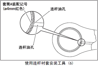 (1) 將新的連桿襯套的油孔對準(zhǔn)套筒A的裝配記號(ømm 紅色)裝在套筒A上。