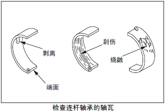 查連桿軸承軸瓦的滑動面,背面和端面,如有接觸不良、滑動損傷、腐蝕、異物嵌入等異常時(shí)更換新品。