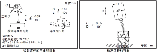 注: 彎曲和扭曲的檢測,在將連桿端蓋按照規(guī)定扭矩緊固后進(jìn)行。
