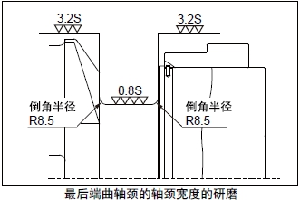 注意研磨時(shí)不要改變軸頸端部倒角的半徑。對于表面硬度明顯降低的曲軸,要再進(jìn)行熱處理并進(jìn)行磁性探傷檢查。研磨加工后的表面精度均應(yīng)滿足標(biāo)準(zhǔn)值要求。