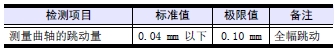 將曲軸的前后端軸頸座在V 型鐵塊上,測量中央軸頸的跳動量。參照標(biāo)準(zhǔn)值,跳動量較小的用研磨方法修正。跳動量較大的用壓力器校正。超過極限值時(shí)更換新的曲軸。使用研磨或壓力機(jī)修理時(shí),要對各部位進(jìn)行磁性探傷檢查,確認(rèn)沒有有害的裂痕或損傷。