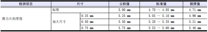 注:(a) 推力片的加大尺寸有0.25、0.50、0.75 mm。