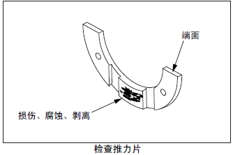檢查推力片的滑動面、背面和端面,如有接觸不良、滑動損傷、腐蝕、異物嵌入等異常時(shí)更換新品。
