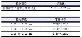 注: 從活塞突出量、缸套凸肩部的突出量、氣缸墊片的厚度,可判斷氣缸頭間隙(活塞頂部和氣缸頭之間的間隙)。氣缸頭間隙=氣缸頭墊片的厚度+ 缸套凸肩部的突出量-活塞突出量