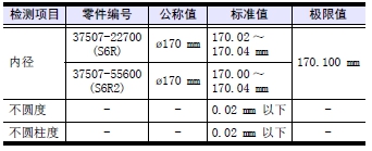 (3) 測(cè)量值不在基準(zhǔn)值范圍內(nèi),或凸緣部分有斷缺時(shí),更換新的缸套。