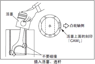 (1) 將連桿放入缸套內(nèi),注意不要碰觸缸套,將活塞從曲軸箱體上面緩慢放下。