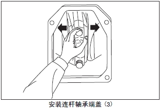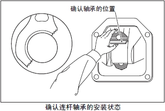 (6) 從曲軸箱體的側(cè)面檢測(cè)口檢查連桿的上軸瓦是否脫落。上軸瓦錯(cuò)位時(shí),用手推壓上軸瓦進(jìn)行調(diào)整。