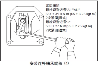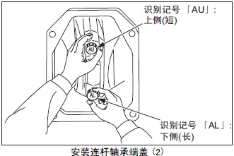 (3) 確認(rèn)三菱發(fā)動(dòng)機(jī)連桿軸承端蓋和連桿的裝配編號(hào)位于同一側(cè),并且裝配編號(hào)一致后,將連桿軸承端蓋安裝在連桿上。