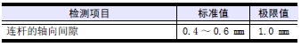 測(cè)量連桿的軸向間隙。超過極限值時(shí),更換故障原因的零部件。