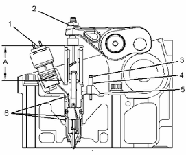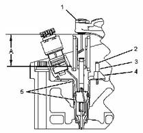 55±10N·m(41±7lbft)。A--單體噴油器的高度是從正時(shí)底座起進(jìn)行測量的。將單體噴油器的高度調(diào)整為