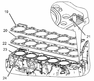 將適當(dāng)?shù)钠鸬踉O(shè)備接連在缸蓋 (16) 上。 缸蓋的重量約為 235 kg (518 lb)。