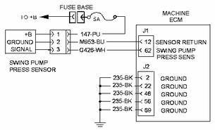 該診斷代碼與回轉(zhuǎn)泵壓力傳感器有關(guān)。 FMI 04 表示機器 ECM 已確定傳感器輸出信號電壓低于正常值。
