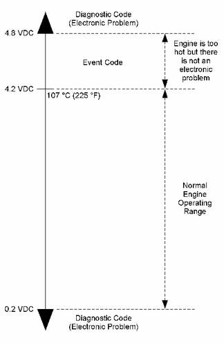 電子控制模塊 (ECM) 設置現(xiàn)行故障診斷代碼后,即啟動"現(xiàn)行代碼警報"指示燈(卡特彼勒 ET 的"發(fā)動機控制警報狀態(tài)")以提示駕駛員。如果產(chǎn)生故障診斷代碼的狀態(tài)是瞬時的,則此信息會在現(xiàn)行故障診斷代碼列表中消失。 此故障診斷代碼設為記錄狀態(tài)。