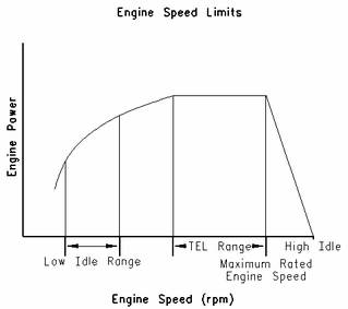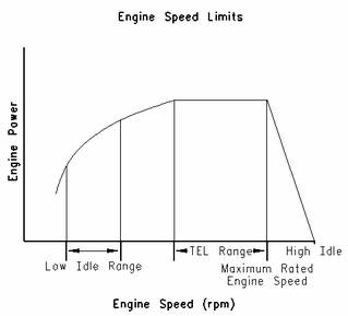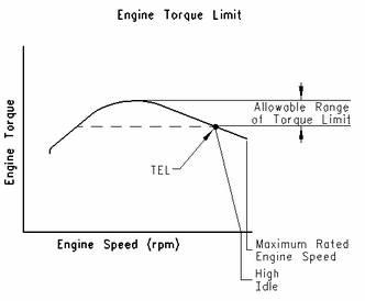 "TEL"是一個客戶可編程參數(shù),用于定義最大功率下允許的最高發(fā)動機轉(zhuǎn)速。最大可將"TEL"編程設定在最高發(fā)動機額定轉(zhuǎn)速上。"TEL"通過發(fā)動機過載運轉(zhuǎn)曲線定義。