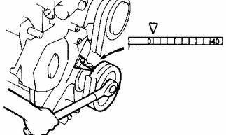 注:可以利用套筒扳手通過曲軸皮帶輪上的螺栓轉(zhuǎn)動(dòng)曲軸。也可以通過轉(zhuǎn)動(dòng)交流發(fā)電機(jī)轉(zhuǎn)動(dòng)曲軸。這會(huì)同時(shí)轉(zhuǎn)動(dòng)皮帶和曲軸皮帶輪。