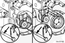 拆下兩個雙頭導向螺柱,然后安裝其余的安裝螺栓。擰緊螺栓。扭矩值: 72 n.m [53 ft-lb]