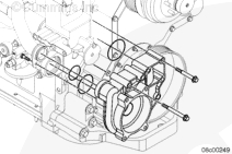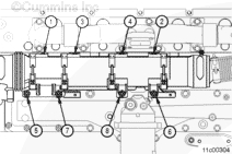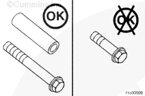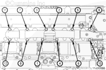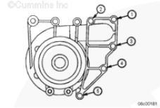 使用清潔的康明斯發(fā)動機機油潤滑所有水泵螺栓的螺紋和螺栓端頭底部。安裝水泵和兩個下部螺栓。擰緊螺栓,將水泵固定到位。