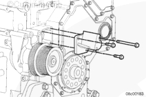 用兩根長螺栓將制冷劑壓縮機支架安裝到齒輪室上。擰緊螺栓。