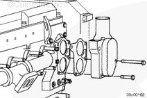 安裝節(jié)溫器殼體蓋、密封墊和 4 根螺栓。擰緊螺栓。