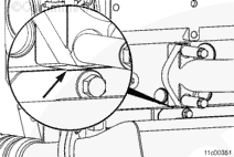 檢查上部 EGR 冷卻器安裝支架和排氣歧管法蘭的下部之間是否為干涉配合。如果此干涉存在,則打磨圖中所示區(qū)域內(nèi)上部 EGR 冷卻器安裝支架上的間隙。