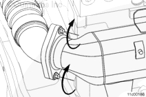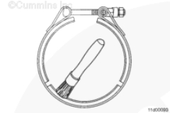 在 V 形帶箍的內(nèi)側(cè)涂一層高溫防粘結(jié)復合劑,以確保對帶箍適當加載。在排氣歧管前部安裝 v 形帶箍。在與排氣歧管前部分連接的 EGR 冷卻器導引端安裝一個新的密封墊。將 EGR 冷卻器裝到機油冷卻器總成的雙頭螺柱上。
