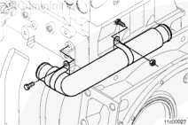 將 EGR 冷卻器冷卻液供應跨接管插入 EGR 冷卻器冷卻液供應管。將 EGR 冷卻器冷卻液供應跨接管滑入 EGR 冷卻器進口。將固定卡箍和螺釘安裝到 EGR 冷卻器上。