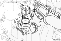 從部件上拆下保護蓋。潤滑 EGR 后連接管的軟管端。安裝軟管卡箍但不要擰緊,在 EGR 冷卻器和 EGR 閥安裝支架上安裝 EGR 后連接管和密封墊。擰緊 2 個螺釘。