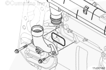 工業(yè)用康明斯ISX和QSX15發(fā)動機使用帶有蓋板或水接頭的節(jié)溫器殼體蓋。如果節(jié)溫器蓋已拆下,將其裝上。擰緊螺栓。
