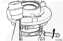 如果吊耳安裝在渦輪增壓器軸承殼中,則吊耳只能用于渦輪增壓器的拆裝操作。它不能用于拆卸排氣歧管或發(fā)動機(jī)。這樣做會損壞渦輪增壓器。