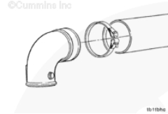 在空-空中冷器管接頭上安裝排氣彎頭和卡箍。在將彎頭安裝到渦輪增壓器上之前不要擰緊卡箍。