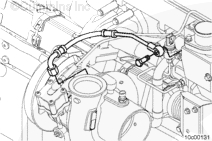 不要在渦輪增壓器冷卻液軟管 O 形圈上使用汽油產(chǎn)品。O 形圈會膨脹從而引起管泄漏。