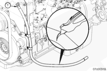 將機(jī)油供應(yīng)軟管連接到位于機(jī)油濾清器座上的機(jī)油供應(yīng)管接頭上。擰緊機(jī)油供應(yīng)軟管。