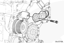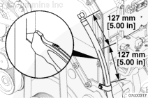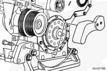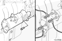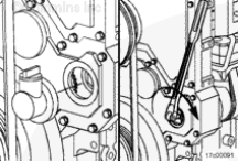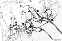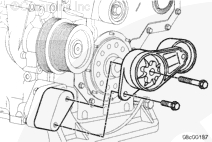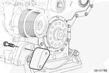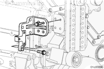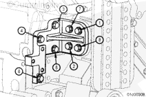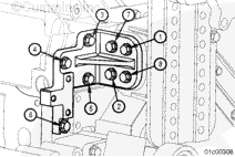 安裝渦輪增壓器防轉(zhuǎn)托架(如果配備)。端部靠在機(jī)油冷卻器殼上。此托架需要 1.25 mm [0.049 in] 加長螺釘。擰緊螺栓。
